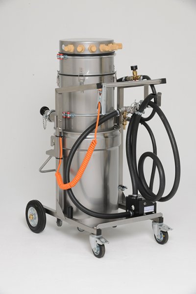Geeignet zur Aufnahme von brennbaren Flüssigkeiten in der Luftfahrtechnik, Chemie-, Pharma- und Petroindustrie sowie Rohstoff-, Zündstoff- und Abfallverarbeitung. Mobiler, leistungsfähiger Sauger auch geeignet für stationäre Absaugeinrichtungen.