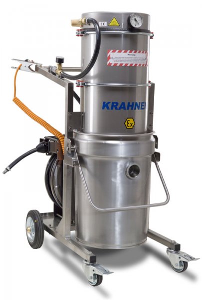 This vacuum cleaner is tested and certificated for applications where all kind of none flammable and flammable dust is to be recovered. Mobile, powerfull vacuum cleaner, which also can be used as a stationary vacuum unit in the chemical-, pharmaceutical- and petrochemical industry as well as any other companies with an explosion protected area.