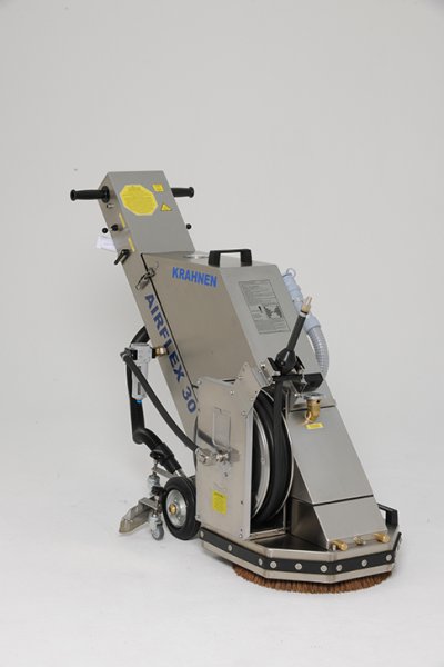 In explosionsgefährdeten Räumen und Bereichen ist der industriegerechte Einsatz pneumatisch betriebener Bodenreinigungsmaschinen geboten. Zugleich sind derart konzipierte, druckluftbetriebene Reinigungsmaschinen die Kosten sparende Alternative zur personalintensiven manuellen Reinigung. Verschmutzungen können im Ex-Bereich darüber hinaus eine Isolation des leitfähigen Fußbodenbelages nach sich ziehen. Diese Kontaktunterbrechung führt erfahrungsgemäß zu erheblichen Störungen, die eine sorgfältige Reinigung mit hoher technischer Sicherheit erfordern. Einsetzbar für kleine und große Flächen und gegen alle Arten von Schmutz – selbst bei aggressiven Medien – steht die AIRFLEX 30 zur Verfügung.